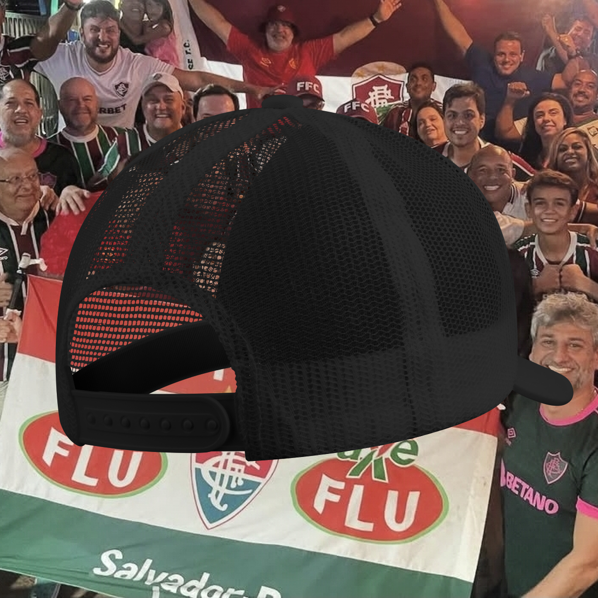 Confeccionado em tecido respirável de alta performance, o modelo garante ventilação contínua, leveza e bem-estar mesmo nos dias mais quentes, sendo ideal para uso prolongado em jogos, eventos e no cotidiano. O acabamento premium confere estrutura firme, caimento impecável e maior durabilidade, enquanto o bordado frontal exclusivo celebra a tradição tricolor da AxéFlu de maneira elegante e marcante.
