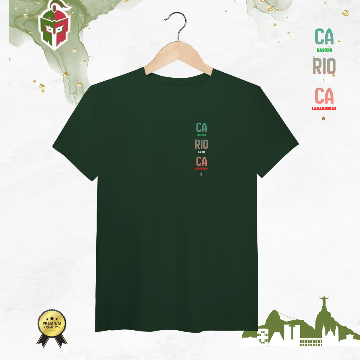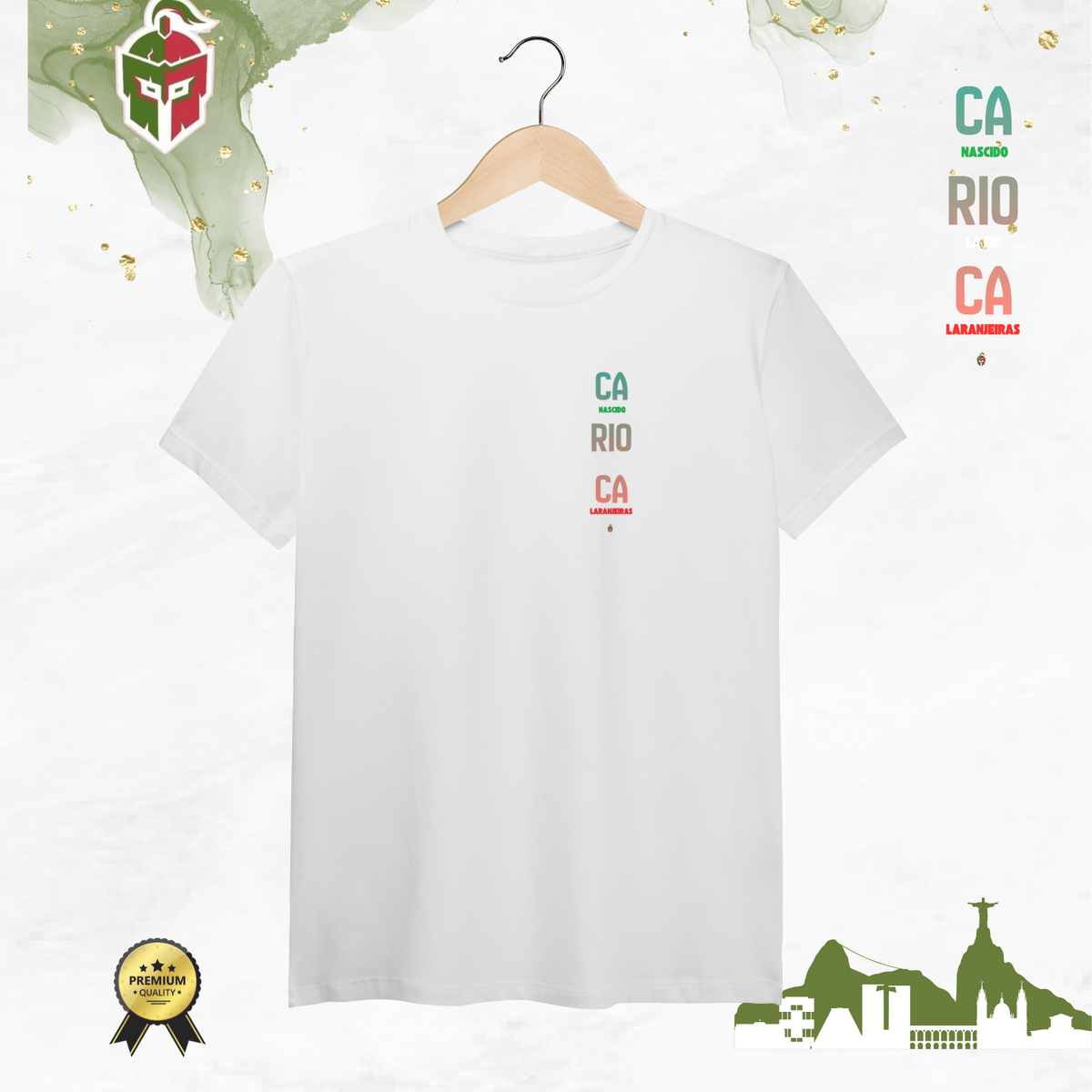 Inspirada nas origens tricolores, a Carioca de Laranjeiras – Edição Pima é mais que uma camiseta: é um manifesto de amor ao Fluminense. Produzida em algodão Pima de altíssima qualidade — macio, leve e durável —, traz a arte “Carioca nascido lá em Laranjeiras”, símbolo do berço da nossa história e da alma do torcedor tricolor.